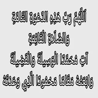 اَللهُمَّ رَبَّ هَذِهِ الدَّعْوَةِ التَّامَّةِ وَلصَّلَاةِ الْقَائِمَةِ آتِ مُحَمَّدًا اَلْوَسِلَيْلَةَ وَالْفَضِيْلَةَ وَابْعَثْهُ مَقَامًا مَحْمُوْدًا اَلَّذِي وَعَدْتَهُ